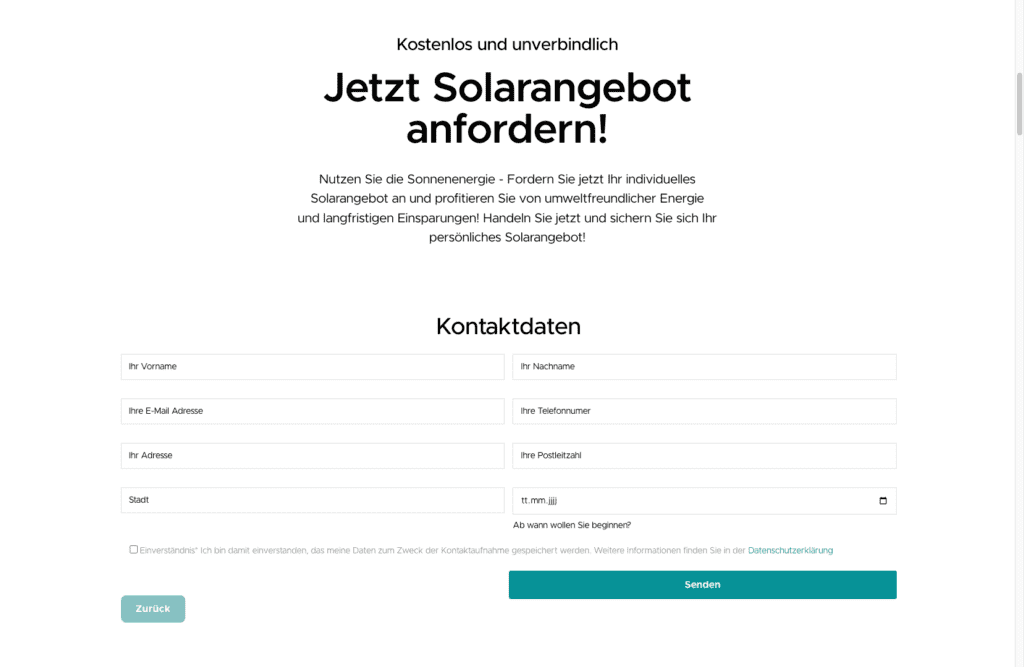 Das Unternehmen wollte seine Online-Präsenz stärken, um potenzielle Kunden besser über die Vorteile von Solarenergie zu informieren und zur Kontaktaufnahme zu motivieren.
