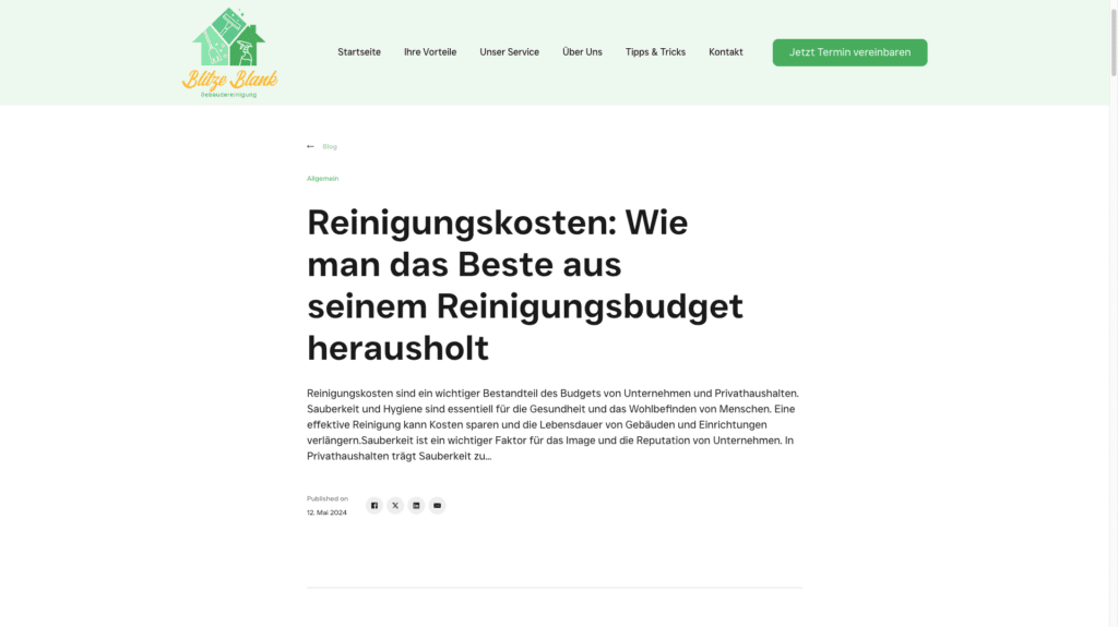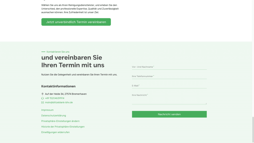 Blitzeblank BHV wollte seine Online-Sichtbarkeit verbessern und ein Design schaffen, das die Werte Sauberkeit und Nachhaltigkeit vermittelt. Zudem sollte ein benutzerfreundliches Kontaktformular integriert werden, das die Kunden zur Nutzung anregt.